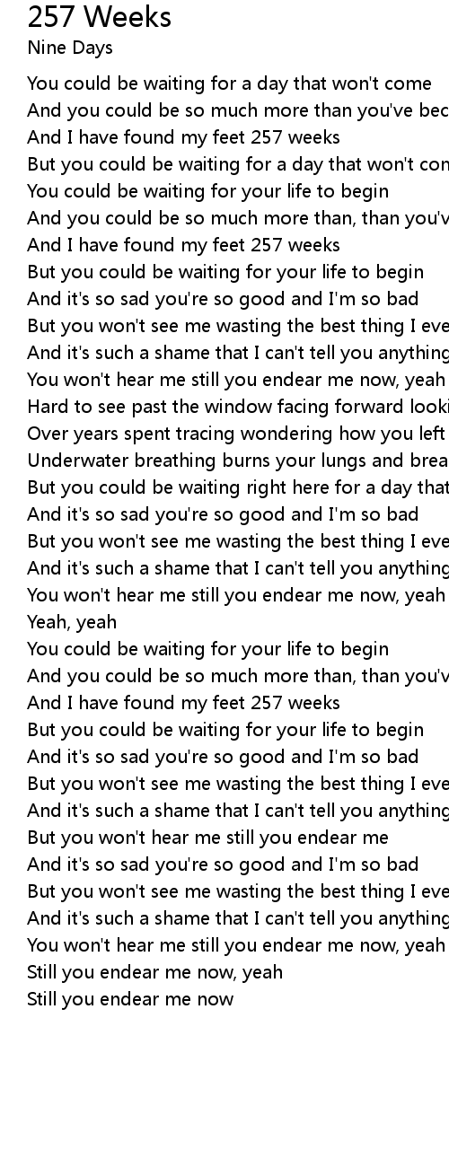 But you won't hear me still you endear me |