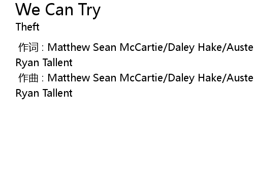 | [00:00.000] | 作词 : Matthew Sean McCartie/Daley Hake/Austen Hooks/Kristoffer Ryan Tallent |