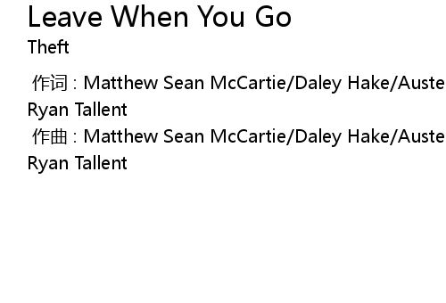 | [00:00.000] | 作词 : Matthew Sean McCartie/Daley Hake/Austen Hooks/Kristoffer Ryan Tallent |