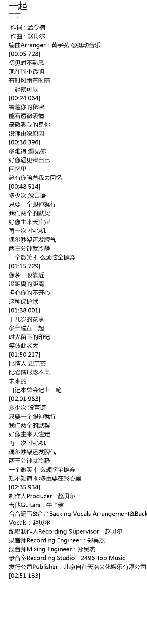 | [02:41.932] | pèi chàng zhì zuò rén Recording Supervisor: zhào bèi ěr |