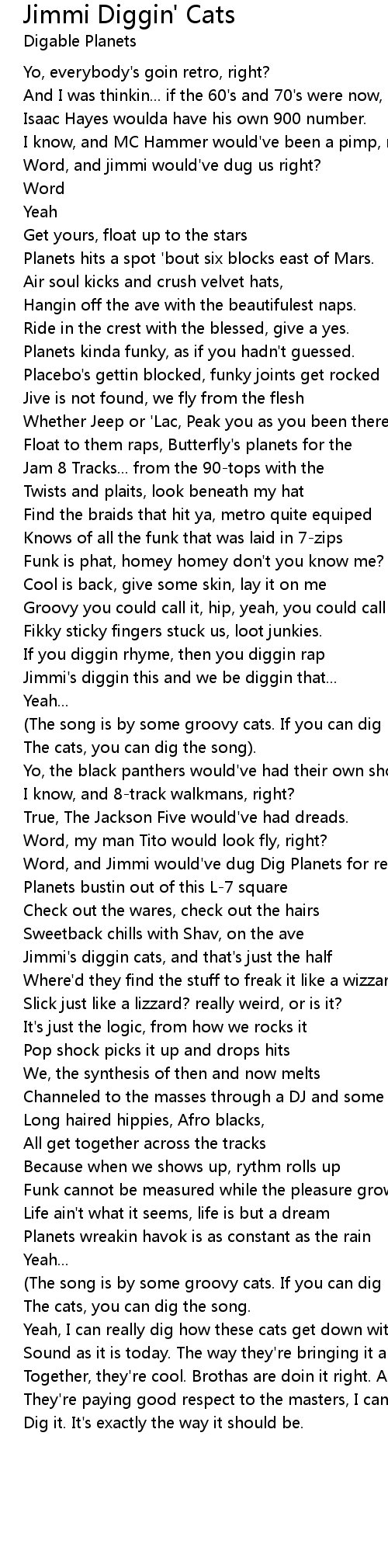 Word, and Jimmi would've dug Dig Planets for real, word. |