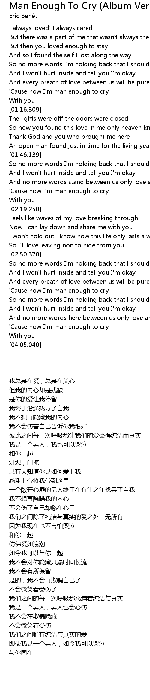 'Cause now I'm man enough to cry |