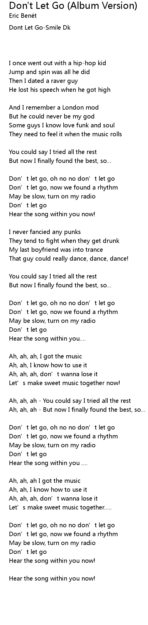 | Dont Let Go-Smile Dk | |