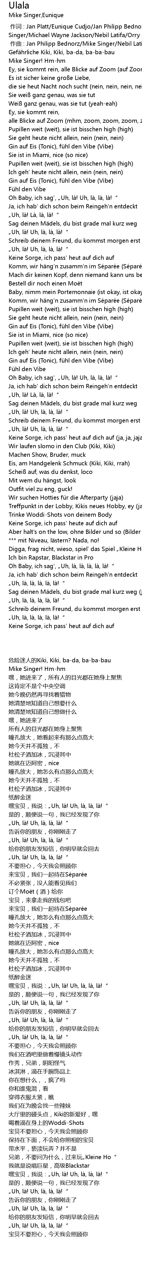| [00:00.000] | 作词 : Jan Platt/Eunique Cudjo/Jan Philipp Bednorz/Mike Singer/Michael Wayne Jackson/Nebil Latifa/Orry Athuriguri |
