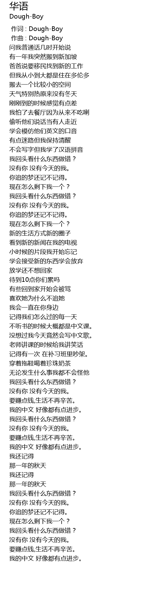 | [00:42.055] | bú huì xiě zì dàn wǒ xué le hàn yǔ pīn yīn |