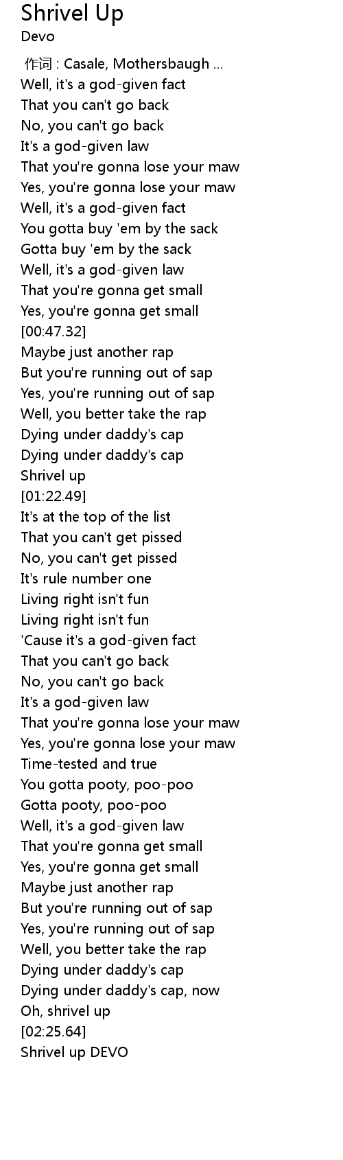 | [00:00.00] | 作词 : Casale, Mothersbaugh ... |