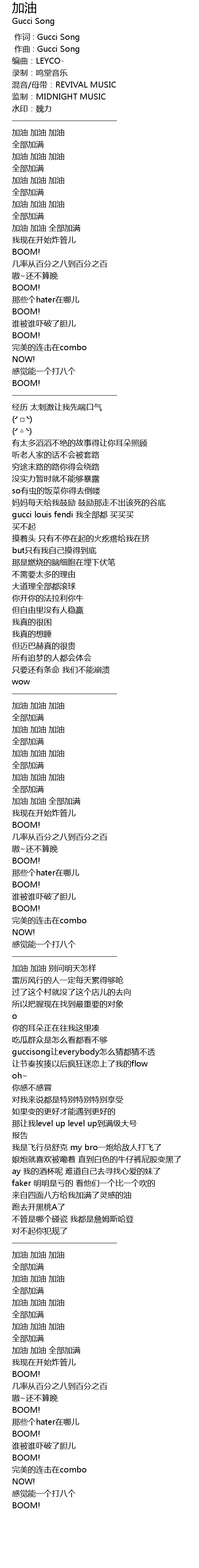 | [00:00.000] | 作词 : Gucci Song |