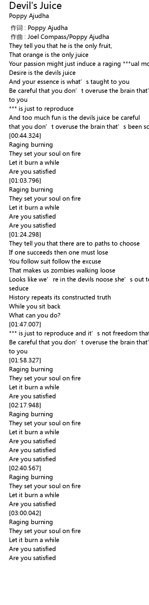 | [00:34.782] | And too much fun is the devils juice be careful |
