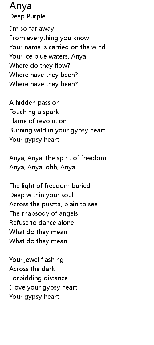 Anya, Anya, ohh, Anya |