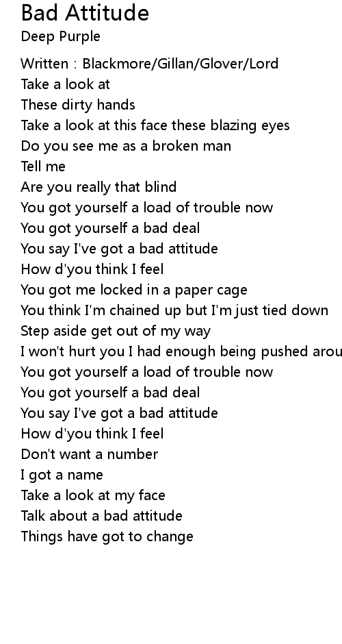 | You say I' ve got a bad attitude | |