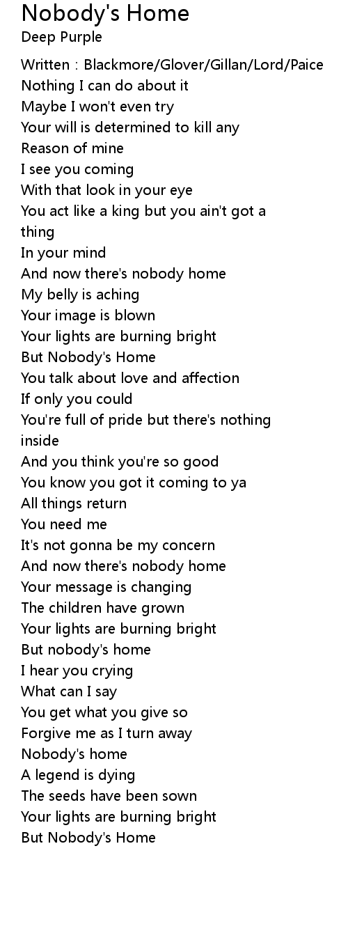 | Nobody' s home | |