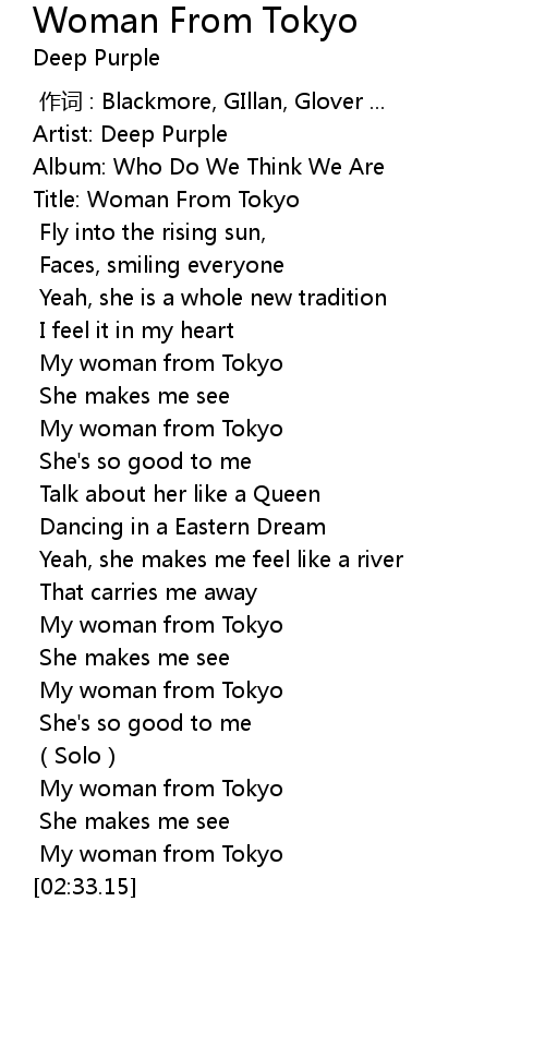 | [00:35.35] | Title: Woman From Tokyo |