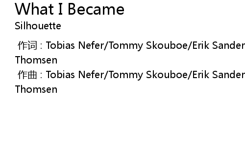 | [00:00.000] | 作曲 : Tobias Nefer/Tommy Skouboe/Erik Sanders/Steffen Fridtjof Thomsen |