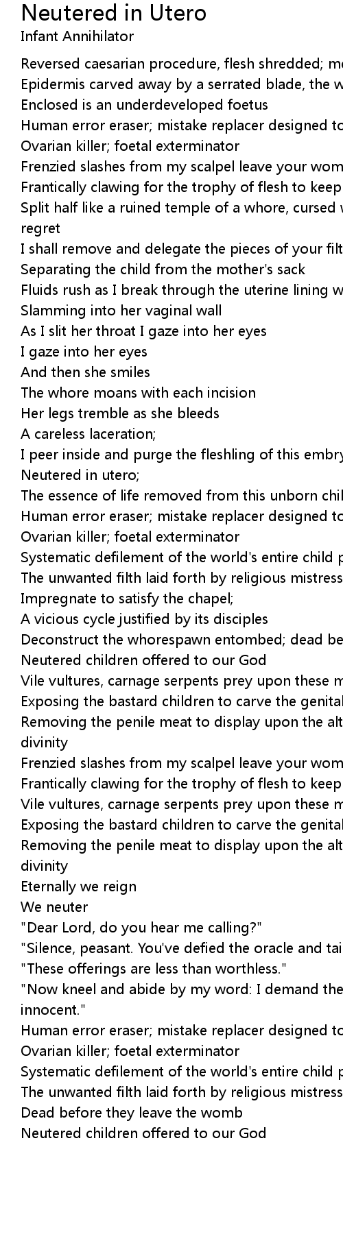 Deconstruct the whorespawn entombed; dead before they leave the womb |