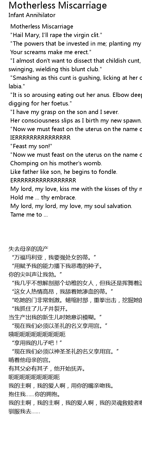 "It is so arousing eating out her anus. Elbow deep, force-fisting, digging for her foetus." |