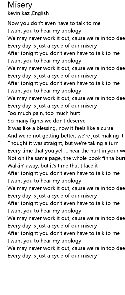 | [00:08.65] | Every day is just a cycle of our misery |