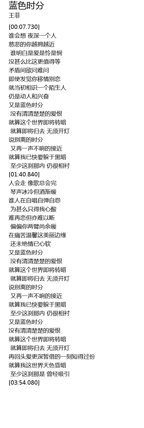 | [03:16.520] | 又是蓝色时分 |