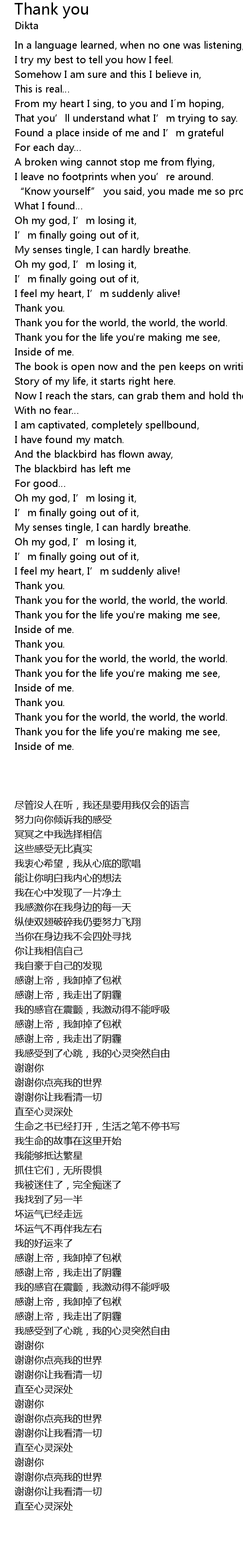 | Song | Thank you |