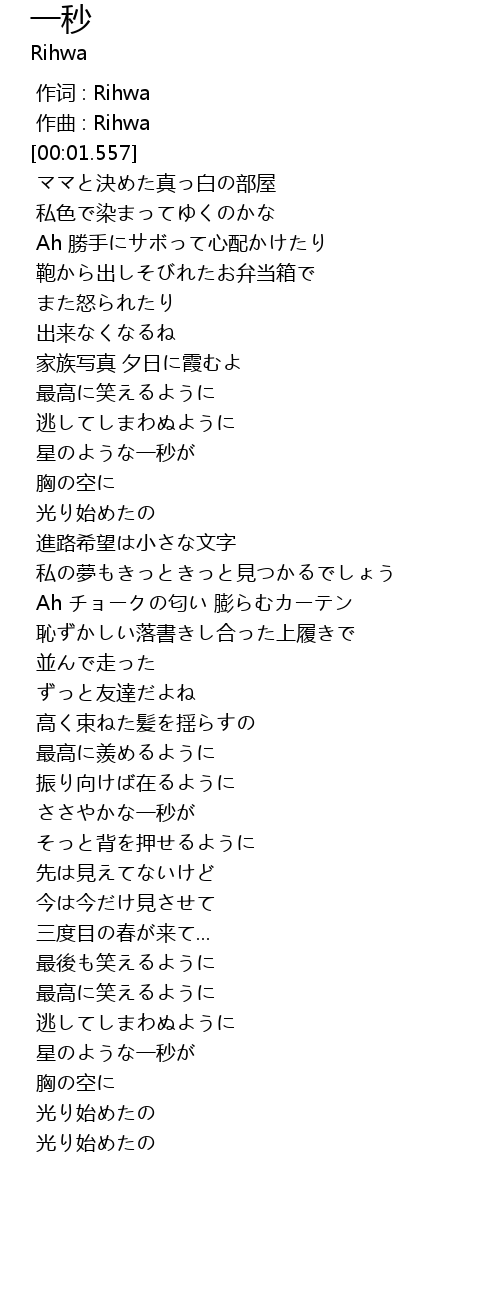 | [01:54.306] | Ah チョークの匂い 膨らむカーテン |