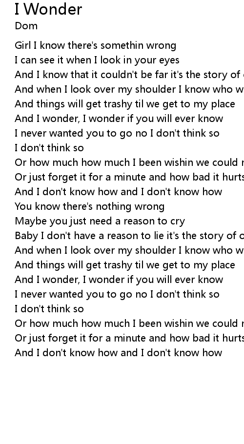 And I wonder, I wonder if you will ever know |
