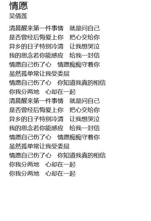 | [01:09.55] | 情愿自己伤了心 情愿痴痴守着你 |