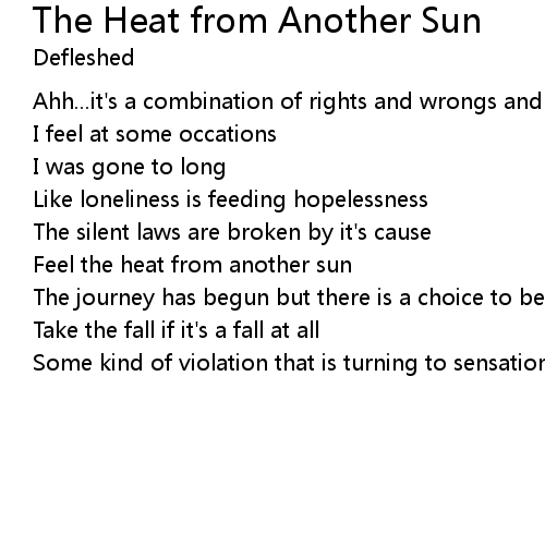 | Song | The Heat from Another Sun |