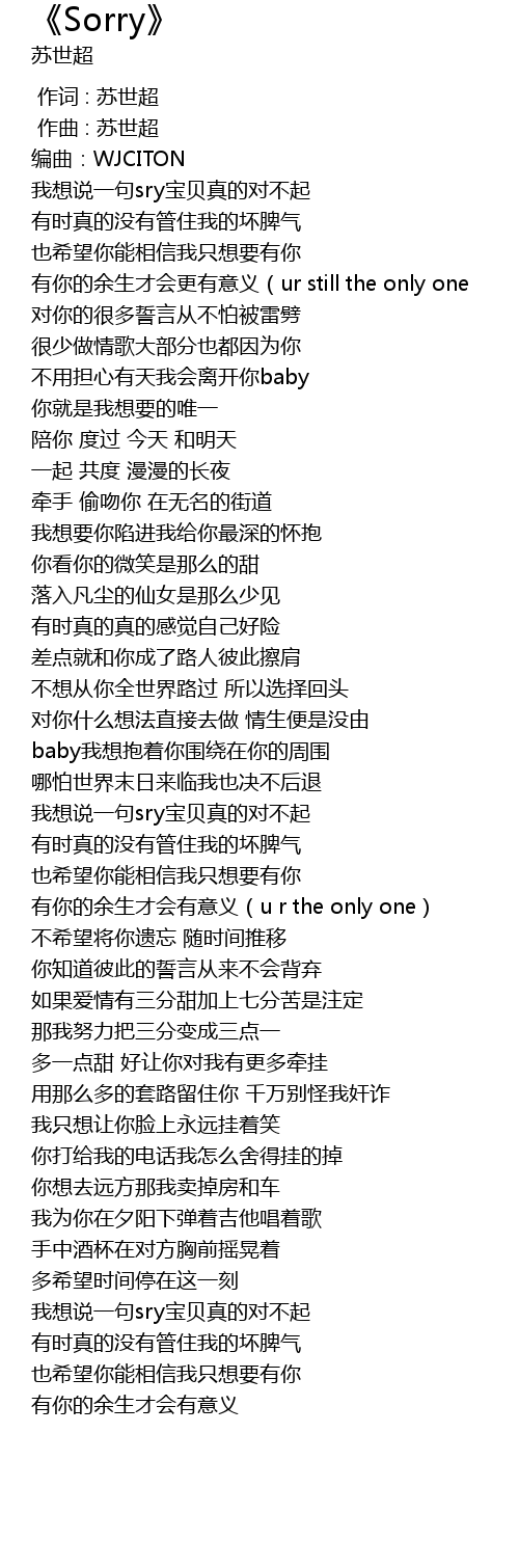 | [01:17.142] | 我想说一句sry宝贝真的对不起 |