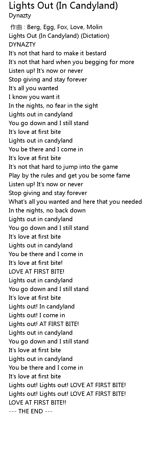 | [00:01.00] | Lights Out (In Candyland) (Dictation) |