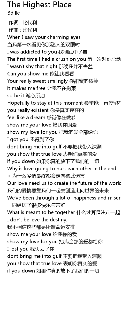 | Song | The Highest Place |