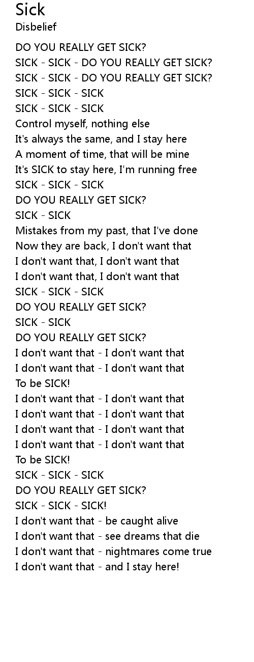 | SICK - SICK - DO YOU REALLY GET SICK? | |