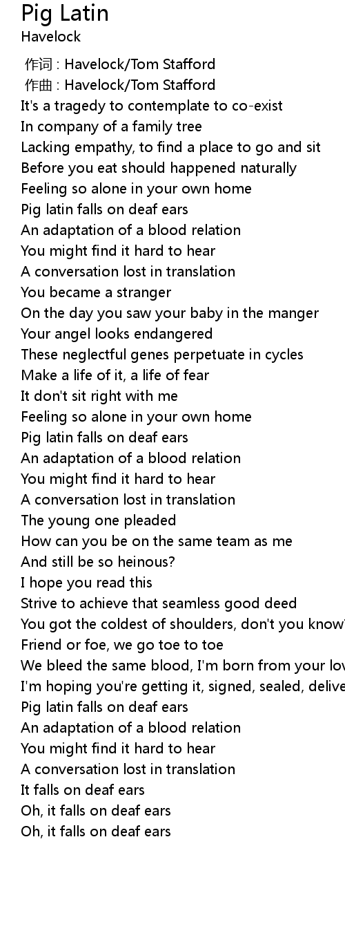 | [00:00.000] | 作词 : Havelock/Tom Stafford |
