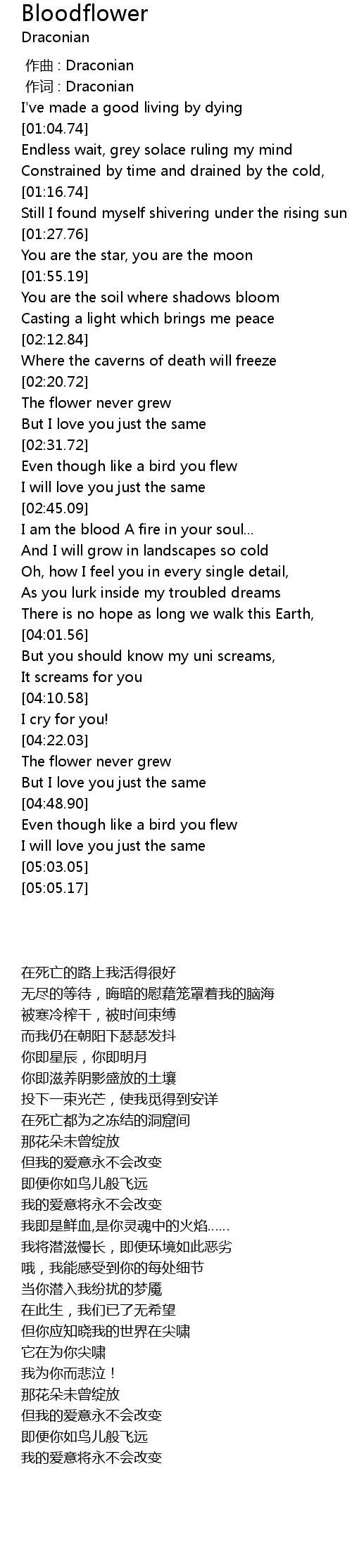 | [00:01.00] | 作词 : Draconian |