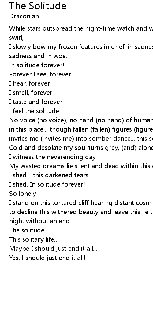 No voice (no voice), no hand (no hand) of human source can reach me (reach me) in this place... though fallen (fallen) figures (figures) closely passes and invites me (invites me) into somber dance... this somber dance! |