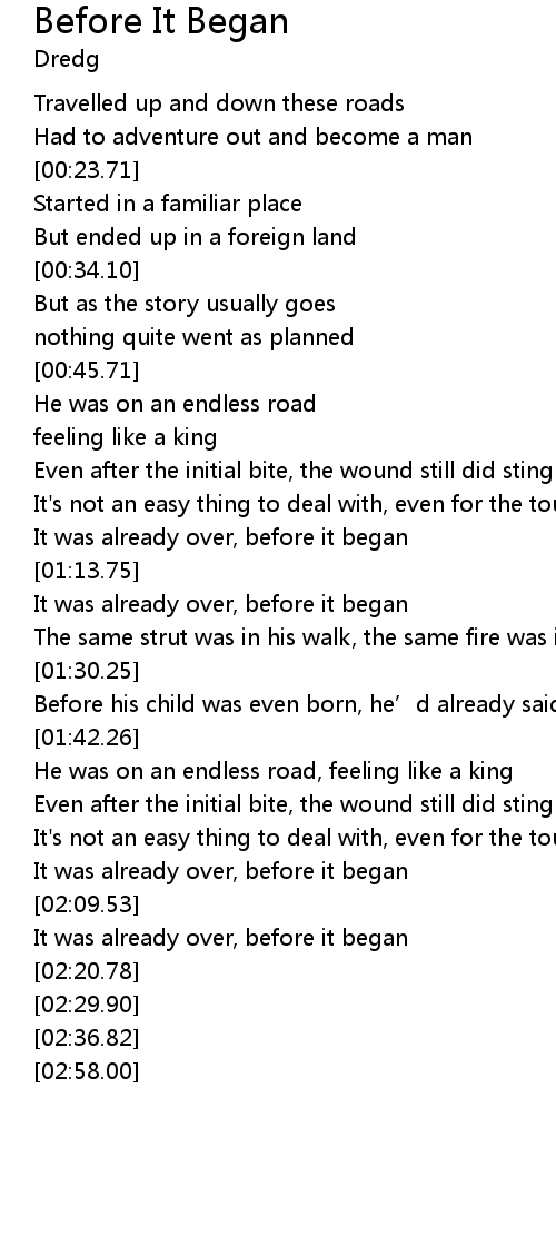| [02:02.14] | It was already over, before it began |
