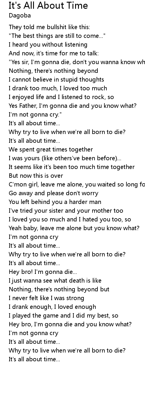 Yes Father, I'm gonna die and you know what? |