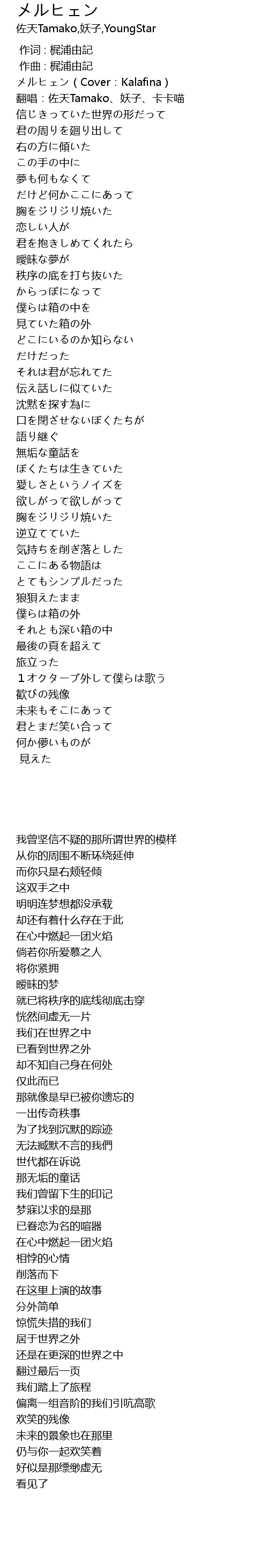 | [00:01.000] | メルヒェン(Cover:Kalafina) |