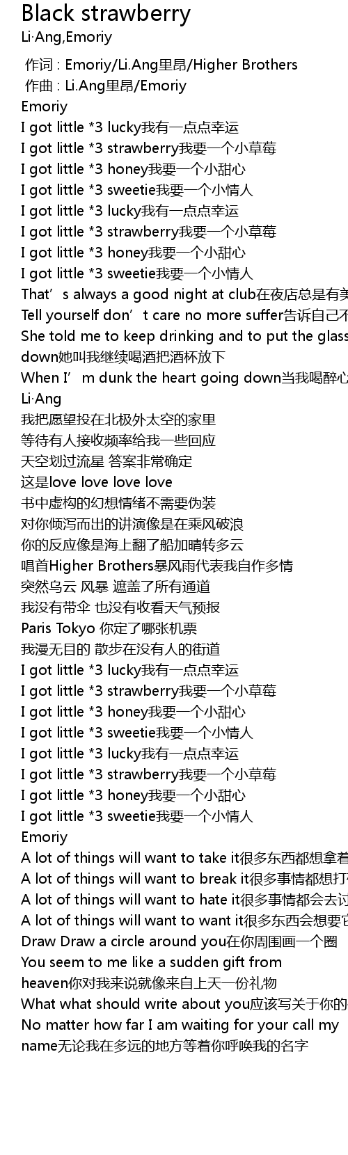 | [01:48.426] | I got little 3 strawberry wo yao yi ge xiao cao mei |