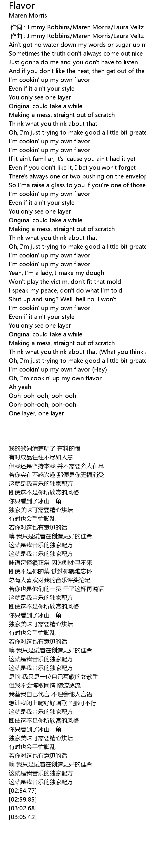 | [00:00.000] | zuo ci : Jimmy Robbins Maren Morris Laura Veltz |