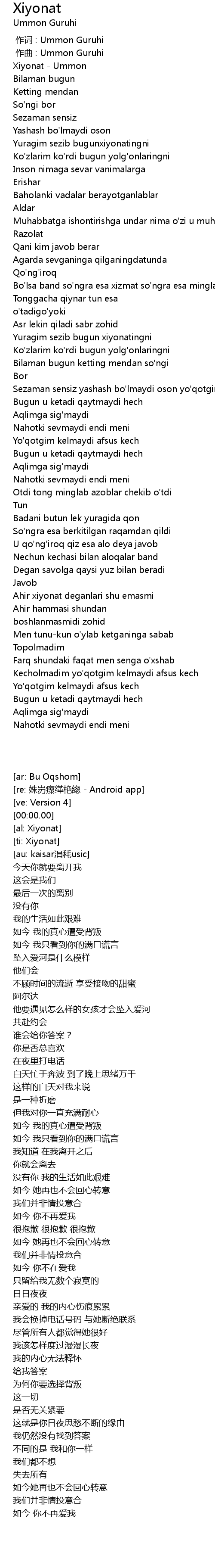 | [00:00.000] | zuo qu : Ummon Guruhi |