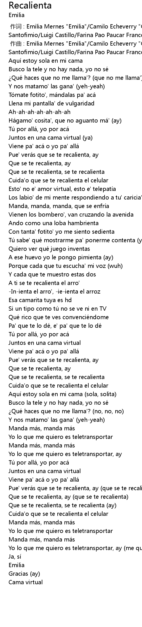 | [02:32.00] | Que se te recalienta, se te recalienta (ay) |