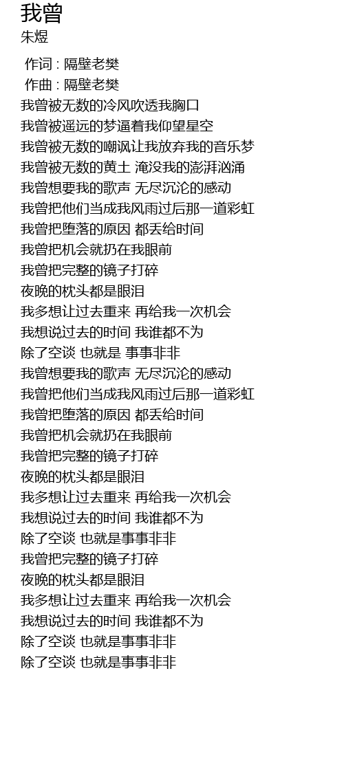 | [00:00.000] | 作词 : 隔壁老樊 |