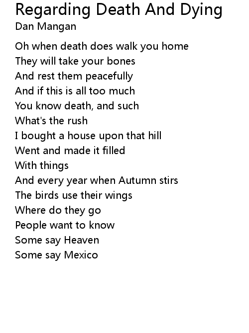 | Song | Regarding Death And Dying |