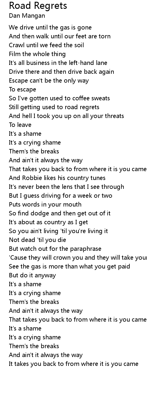 Still getting used to road regrets |
