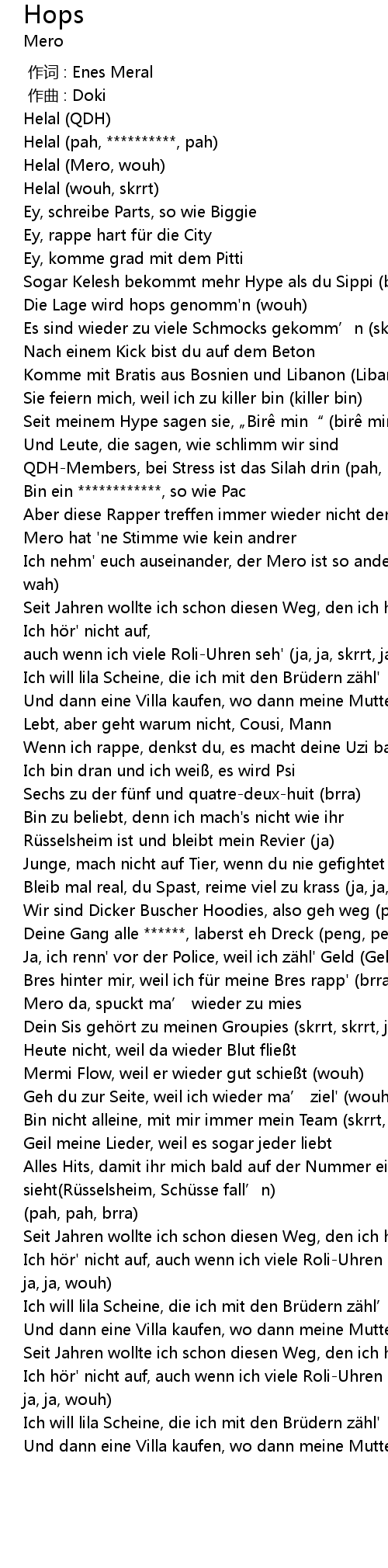 | [00:42.43] | Ich nehm' euch auseinander, der Mero ist so anders, wah, wah wah, wah |