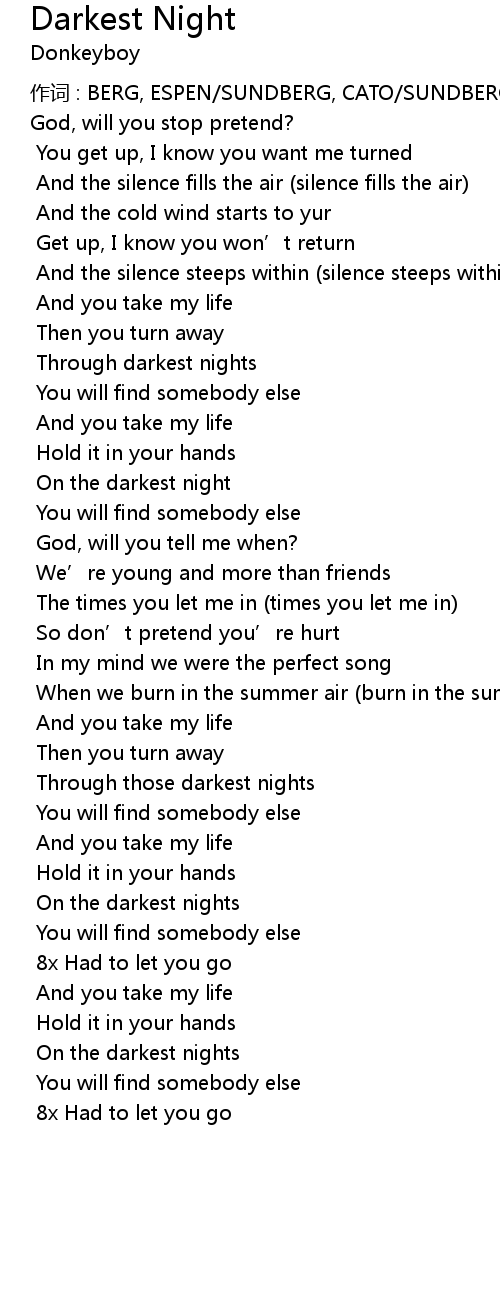 | 作词 : BERG, ESPEN/SUNDBERG, CATO/SUNDBERG, KENT/ERIKSRUD, SI | |