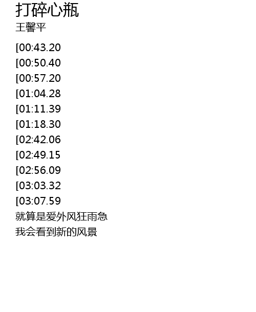 | [03:53.00][03:07.59][01:52.31] | 还是决定打碎心瓶 |