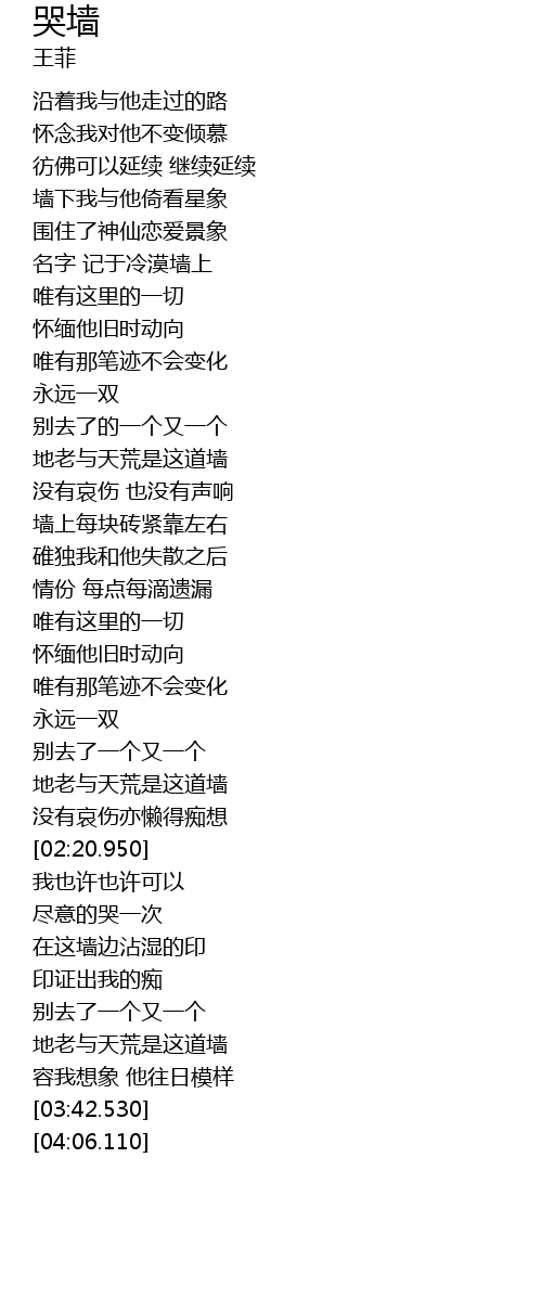 | [00:33.570] | 名字 记于冷漠墙上 |