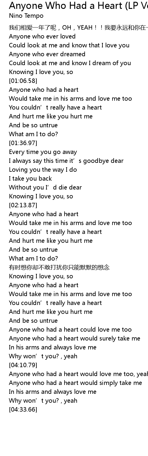 | Song | Anyone Who Had a Heart (LP Version) |