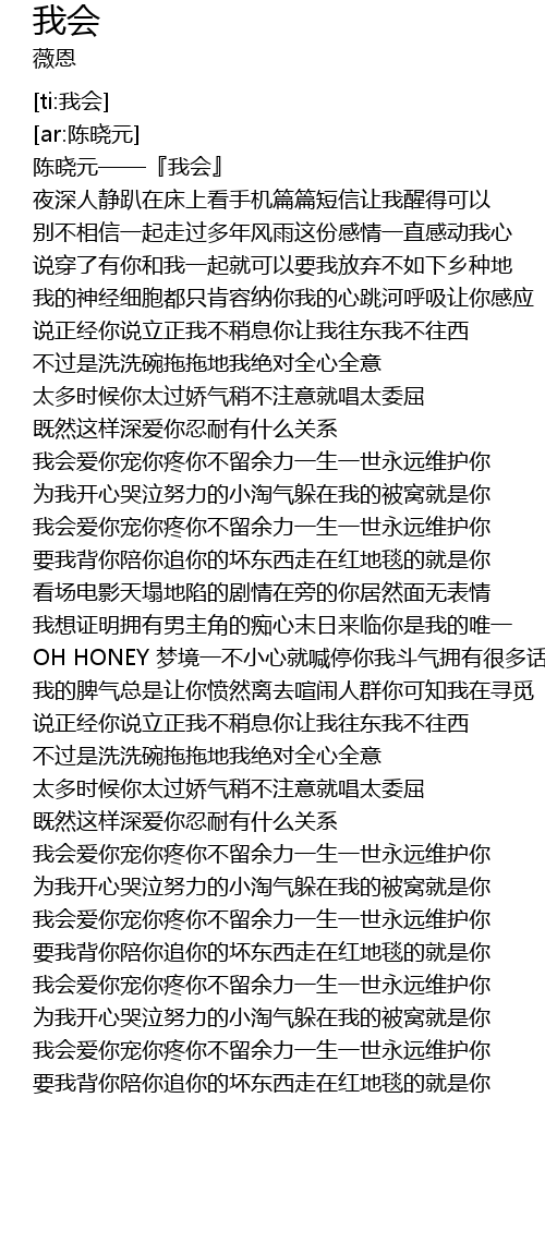 | [00:02.141] | 陈晓元——『我会』 |