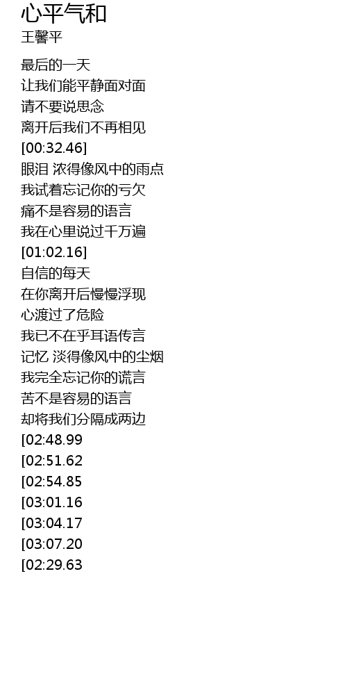 | [03:29.26][03:04.17][02:20.65] | xin ping qi he yong wang zhi qian |